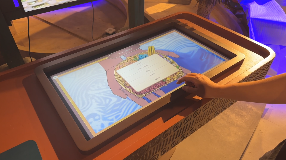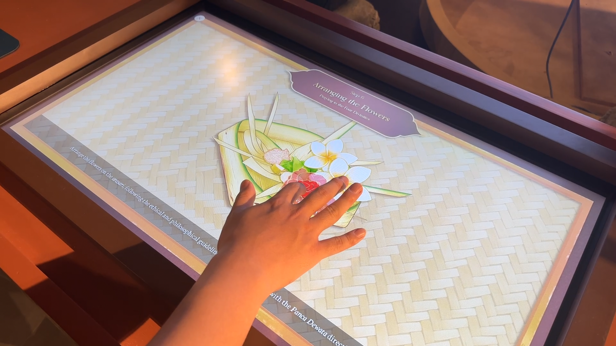 项目聚焦 Subak 文化核心 —— 基于 “Tri Hita Karana” 哲学的人、自然与精神和谐之道,以及水作为神圣馈赠的文化内涵。我们全程负责核心数字内容创作:通过全景投影媒体内容,生动还原巴厘岛梯田灌溉系统的精妙布局与四季更迭景象,将 Subak 的水利管理智慧可视化呈现;打造 “Canang Sari 制作” 交互装置,让观众通过沉浸式操作体验这一巴厘岛传统供品的手工创作流程,触摸农耕文明背后的精神信仰与生活肌理;专属设计的 “Flow of Water” 交互装置,则以动态模拟与互动引导,直观解读 Subak 文化中公平分水、顺应自然的农业核心逻辑,让抽象的文化理念可感可玩。